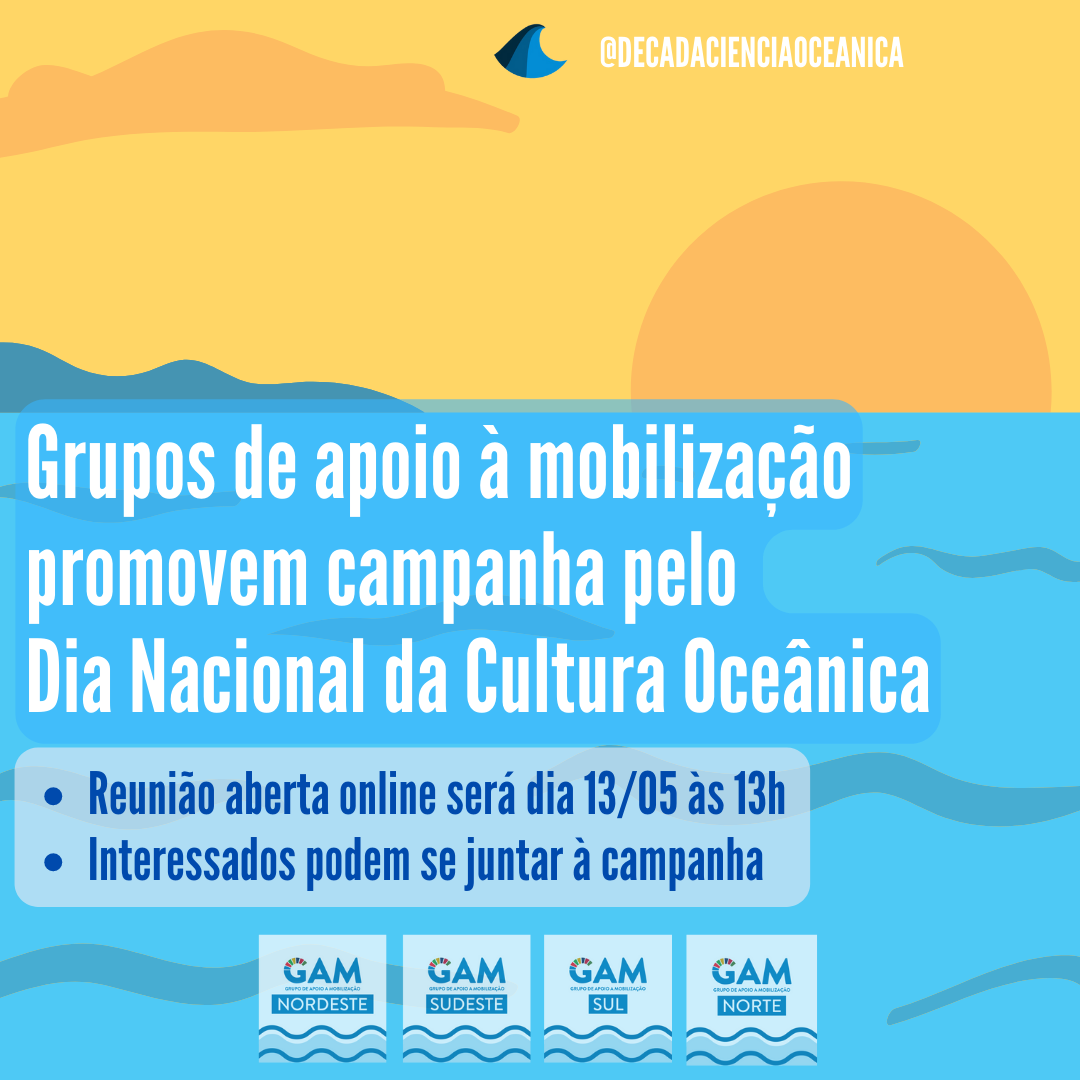Os interessados em se juntar às ações da campanha pela criação do Dia Nacional da Cultura Oceânica no Brasil podem entrar nos links dos grupos de WhatsApp divididos em quatro áreas temáticas: Legislação, Educação Ambiental, Mobilização e Articulação,  Criação de conteúdo e eventos. A atividade é coordenada pelos Grupos de Apoio à Mobilização (GAMs) da Década do Oceano. A reunião aberta será realizada no dia 13 de maio, sexta-feira, às 13h, e pode ser acessada por meio deste link. A ideia é apresentar uma proposta de agenda e de governança da campanha. Após a reunião, os grupos terão continuidade e atuarão de forma conjunta na governança da campanha e na implementação do seu plano de ação.